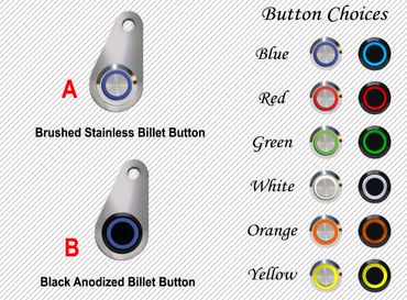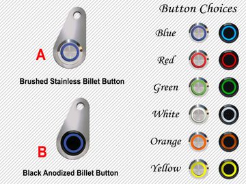 The HOT BUTTON comes with a 22mm Billet style Start Button Switch, Made of top quality stainless steel, this heavy duty cycle switch has an attractive “soft brushed” finish and carries a IP69 water proof rating An Illuminated halo LED ring indicates system operation status. Start Buttons are available in 3 LED colors; RED, BLUE or GREEN. Switches are pre-wired to a 36″ plug in harness.